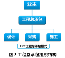 EPC工程总承包管理模式是消除装配式建筑增量成本,实现效益最/大化的有效途径,其将工程建设的全过程联结为一体化的完整产业链,实现了资源优化配置,解决了工程管理碎片化、体质机制切块分割等问题。工程总承包组织结构如图3所示。