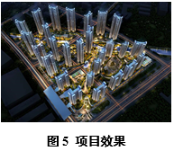 某项目总建筑面积115万m2,最/大建筑高度为150m,由24栋住宅楼组成,住宅数量9672套,项目采用装配整体式剪力墙结构体系、装配式钢-混凝土组合结构体系、铝模为主部分预制的装配式结构体系及钢筋混凝土框架+预制预应力空心楼板结构体系。110m以下的塔楼结构装配率为80%以上;150m塔楼结构装配率为59%;装配式钢-混凝土组合结构装配率为92% 。项目效果如图5所示。
